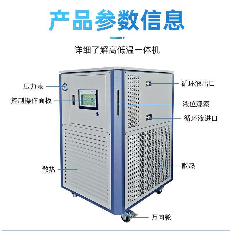 中型高低溫一體機裝置整個系統的液體循環是密閉的,系統帶有膨脹容器,膨脹容器和液體循環系統是絕熱的,不參與液體循環,只是機械的連接,不管循環液體的溫度如何,膨脹容器中的介質始終保持室溫。由于整個液體循環是密閉的系統,所以低溫時沒有水汽的吸收,高溫時沒有油霧的產生。公司可以提供工作溫度很廣的導熱油,...