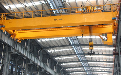 山東威海雙梁行吊銷售廠家在橋式起重機的橋架結構中,橋架的主梁采用由鋼板組合的實體梁式結構,由上、下蓋板和兩塊垂直腹板組成封閉的箱形截面,起重小車的軌道固定在主梁上蓋板的中間,橋架結構的強度和剛性均由箱形主梁來保證。這種類型的起重機橋架結構,被稱為箱型梁式橋架。