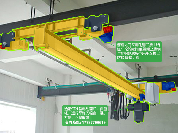 3、雙葫蘆單梁起重機跨度(常用規(guī)格):16米、19米、21米、25米、27米、30米、35米、40米,可非標定制。
